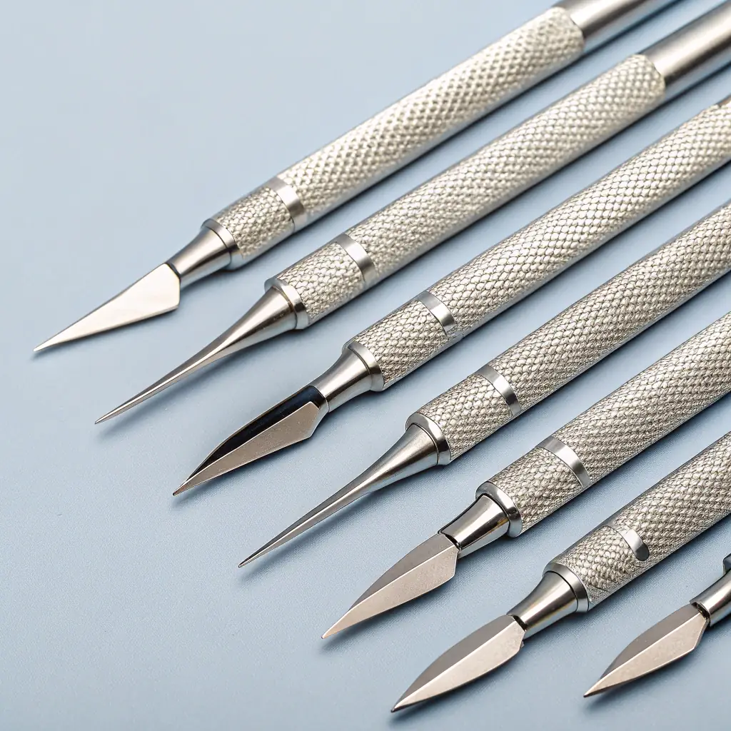 These high-precision surgical scalpels are designed for delicate procedures such as hair transplantation and other cosmetic surgeries. Made from stainless steel with sharp, durable blades, they provide clean, accurate incisions. The scalpels feature ergonomic handles for comfortable grip and control during intricate surgical tasks. An essential tool for any professional surgical kit.
